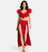 Coordinado de mesh y detalles de plumas en los tirantes del bralette, el cual tiene varilla y sin copa (solo mesh, al igual que la falda).