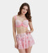 Coordinado en color rosa claro de encaje, el bralette tiene varilla para dar más soporte y falda estilo mesh con diseño de flores, este coordinado es el más cute que veras, así que lo necesitas ya.