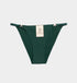 Panty lisa, sin costura de estilo bikini, con un pequeño adorno color dorado-rosado (metálico) con pedrería (imitación de cristales) a los laterales.