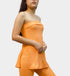 Blusa estilo strapless, con diseño corrugado y una abertura vertical a cada lado que le da un toque más fresco y cómodo.