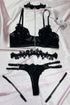 Tipo de empaque: 4 piezas ( 1 bralette con varilla, 1 tanga, 1 collar-liguero de cadena y 1 set de ligas-cadena)