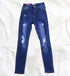 Jeans estilo skinny con detalles de destrucción en la parte delantera.