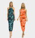 Vestido largo  de mesh (con transparencias pero tiene fondo) en diseño de degradados de color, cuello tipo halter y con una abertura en el lateral izquierdo.